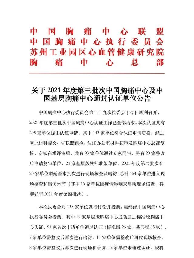 名列其中,顺利通过中国胸痛中心(标准版)认证。