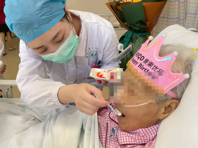 金秋十月,丹桂飘香,亚洲色吧 综合医学科温奶奶迎来了她的95岁生日。“温奶奶,我们今天来给您过生日啦,愿您生日快乐,早日康复。”10月13日上午,九院综合医学科医护团队为离休干部温老献上鲜花和生日蛋糕庆祝寿辰,大家一起吹蜡烛,切蛋糕,病房内传出阵阵欢笑声和生日祝福的歌声,气氛热闹且温馨,镜头记录下了这珍贵的一刻。