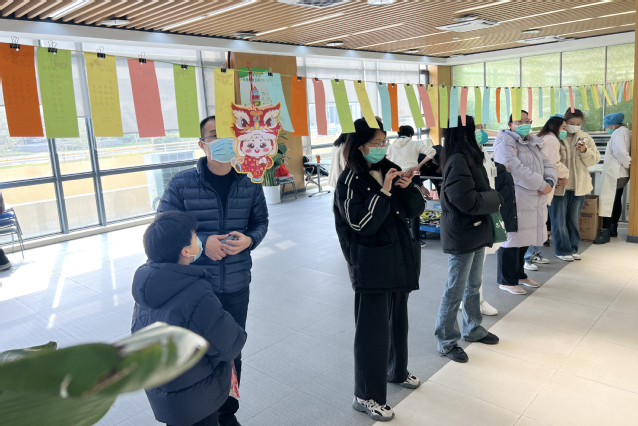 下午一点半,职工们陆续携子女来到职工食堂南区,参加猜灯谜、套圈等活动。孩子们一来到活动现场,便被各式喜庆的兔子灯吸引,喜滋滋地DIY起来。有的孩子牵着家长的手,来到猜谜区开动小脑筋,着急要去赢奖品。