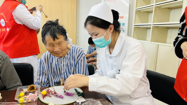 现场,医务社工带领患者和家属一起动手制作团扇,这不仅是一次简单的手工体验,更是一次心灵的疗愈之旅。在挑选干花、组织花型、粘贴固定的过程中,每个人都全神贯注,忘却了病痛和忧虑。在活动中,不少患者表示,通过制作团扇,他们找到了一种表达自我、释放情感的新方式。