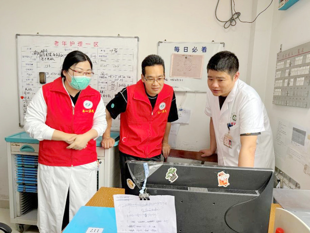吴燕华副主任医师和杜华平主治医生与老年病区的谭医生就一位卒中后癫痫合并认知障碍、房颤、心功能不全、高血压等多种慢性疾病的老年病患探讨病情,指导治疗方案。此次活动受到病区的一致好评,希望以后多组织此类健康宣教活动,普及更多医学健康知识,不断提高基层医院的诊疗技术。