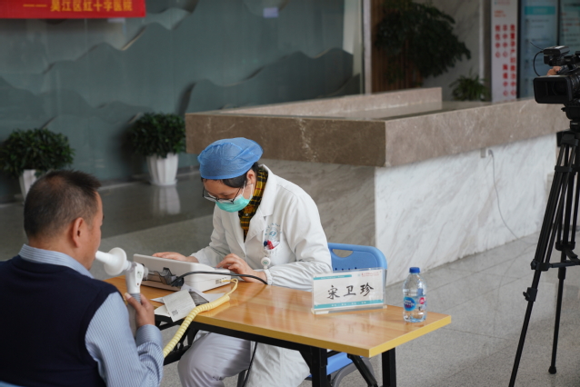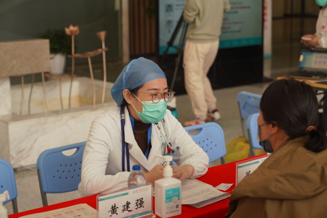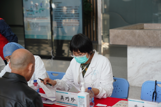 医院门诊一楼大厅,呼吸与危重症医学科学科带头人吴巧珍主任医师,亚洲色吧 呼吸与危重症医学科首席专家级特聘主任黄建强主任(中山大学附属第一医院呼吸与危重症医学科主任医师、诊断学教研室副主任),科主任胡晓蕴主任医师,科副主任董凌云及张剑锋主任医师,科室宋卫珍、郑江南副主任医师及药学部宋秋萍副主任药师、庄伏志主管药师参与义诊活动,为群众提供慢阻肺相关知识咨询,并指导慢阻肺患者正确吸入药物的使用方法,同时安排了免费肺功能、呼出气一氧化氮检查。