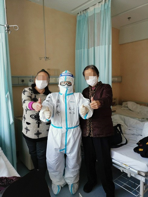 依然记得第一天上班一下子收了十几个新病人的场景,而同一天入院的这批病人已大部分出院,剩下的几个患者内心开始有些焦虑,比如刚刚交班的那个老奶奶,每次看到我们进房间就拉着我们说个不停,问我们她检查的结果,问我们她如果出院隔离的相关注意事项……我们耐心的一一答复她,让她放宽心,不用想太多,好的睡眠有利于恢复,让她安心睡觉。还好,老奶奶非常相信我们苏州姑娘的话,每次看到她们双手合十地对我们表示感谢,我们觉得所有的一切都是值得的。