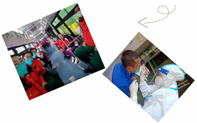 凌晨,刚办完入住,便收到上海全员核酸的任务!经过几个小时的短暂休息后,凌晨4点半,全体人员集合,大家身披“战袍”,坐上“专属”公交车,直达浦东南码头社区参与核酸采样。小区老百姓知道我们是苏州来支援的,说了许多次:“谢谢侬,你们辛苦了!”一天的任务很艰辛,但大家内心无比温暖。