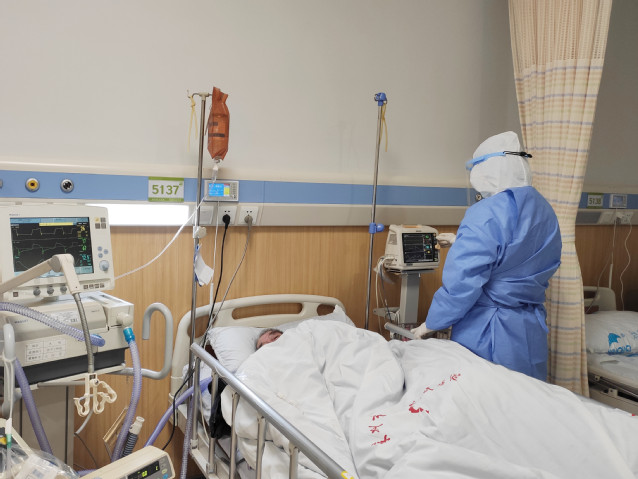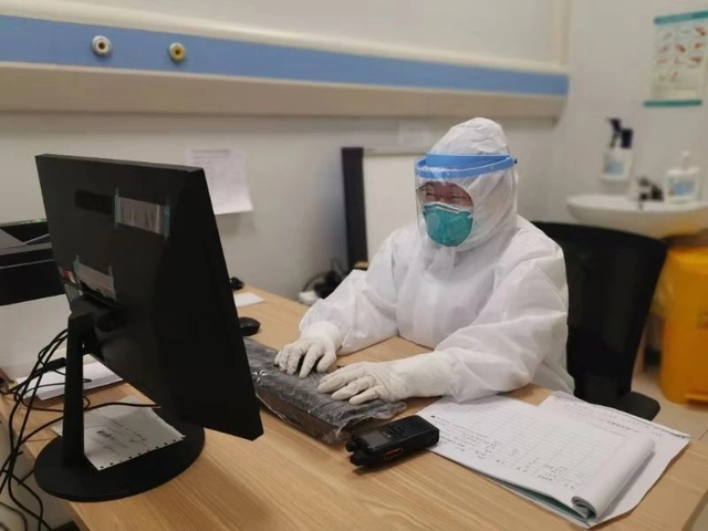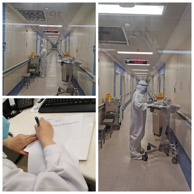 更艰苦的是护理人员,她们需要长时间待在隔离病区内,除了给病人抽血、输液、测量体温、医学观察、仪器操作、交代注意事项外,还要给病人做好健康教育和心理安抚工作。每天规定上班8个小时,实际上远远不止,只有中午可以吃饭和稍微休息下,倘若出去一趟就要更换防护服。