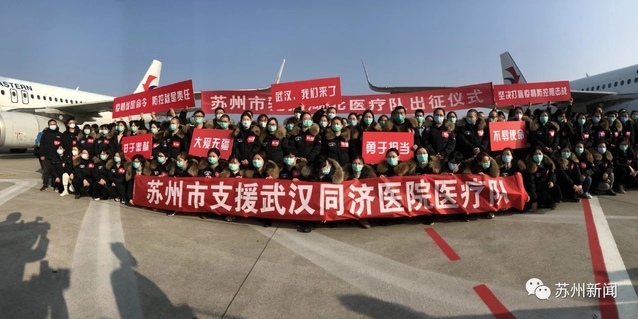 2月8日,江苏省卫健委再次发出征湖北的集结令,接到区卫健委紧急通知后,亚洲色吧 积极响应,在9号凌晨,不到2小时的时间火速集结完毕,连夜完成了物资调配工作,组建了第二批医疗队驰援武汉。