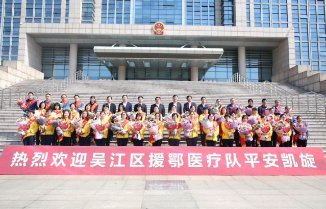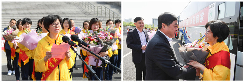 欢迎仪式上,王庆华作了热情洋溢的讲话。他动情地说,42名援鄂医护人员圆满完成支援湖北医疗救治任务凯旋,用实际行动诠释了大爱无疆、医者仁心的职业操守,展现了吴江儿女特别能战斗、特别能奉献的精神风貌。你们是吴江人民的骄傲,是当之无愧的战“疫”英雄。