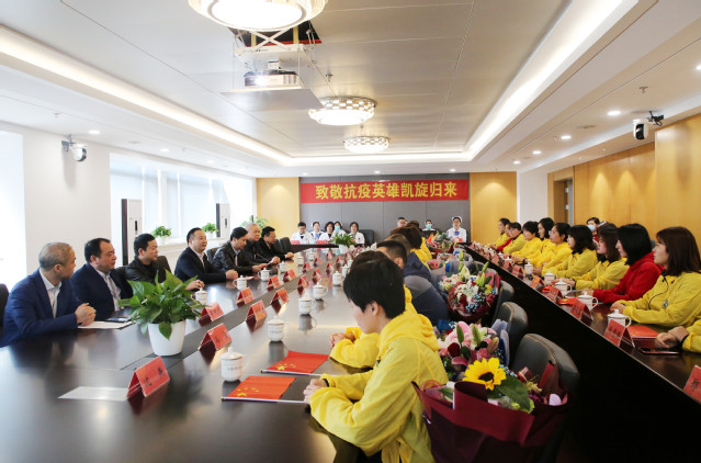 在宽松的氛围下,队员们与医院领导、科室团队开始了交流,大家分享了在战疫一线的所见所闻、所思所想,表达了对社会关心的感谢,以及“若有战 召必回”的决心。