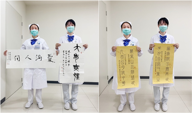 支援湖北归来的医护人员回到了熟悉的工作环境,不仅受到了同事们的欢迎和关心,还受到了社会各界的关怀。区文联、区书协的书法爱好者分别委托九院院方,向支援湖北归来的医护人员送上了书法作品表示敬意。