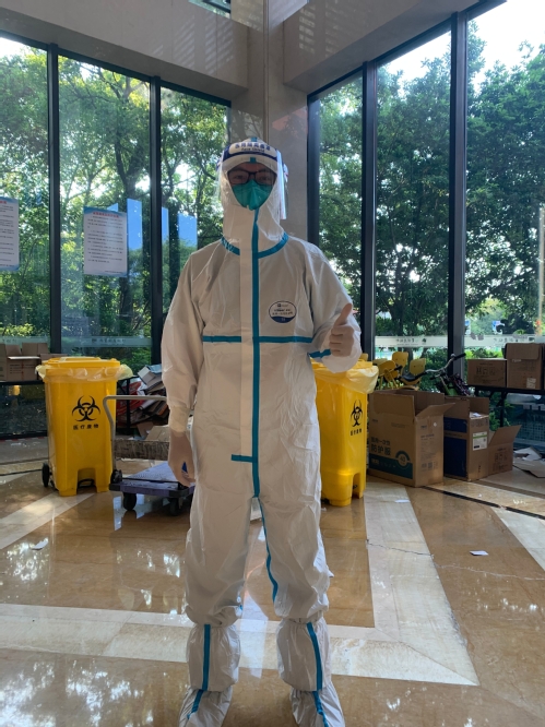 3月15日中午,我接到了医务处紧急通知,“闭环工作可能需要持续一段时间,家里和生活是否有什么困难?”领导问我。“我是党员我先上,妻子也是医务工作者,她肯定会支持我的”。和家人简单地告别后,我奔赴至隔离点。在和点位长简单对接后,我立即连夜组织所有工作人员进行穿脱防护服及三区两通道相关知识培训。在大家的默契配合下,有序开展隔离点的各项疫情防控工作。在连续工作了近一个月后,我在4月11日的晚上突然接到通知,防控级别升级,点位需要紧急调整为上海援建方舱工人专用隔离点。“我是党员我留下,让其他组员先休整”,我选择积极响应党的号召,留下来继续战斗。