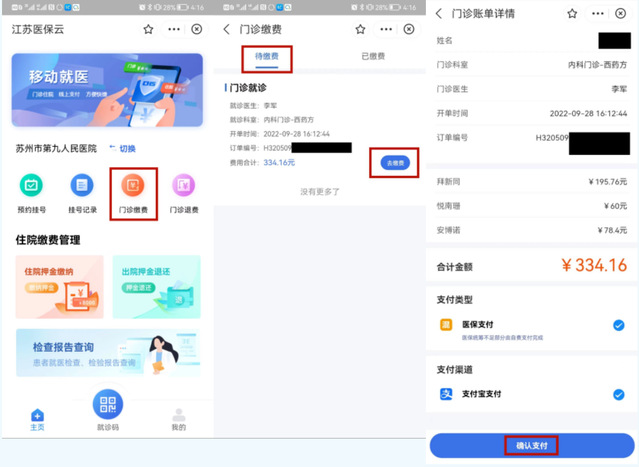 医保移动支付把缴费窗口“搬进”手机,有效解决缴费窗口“多头跑、来回跑”等问题,实现看病就医“无卡化”“便捷化”。患者在“江苏医保云”APP或者支付宝小程序中的“江苏医保云”,选择“亚洲色吧 ”,线上获取号源,完成挂号缴费,生成就诊号码,即可按照就诊时间前往对应诊室就诊。就诊完成后无需前往收费处,手机端即可完成费用支付,前往药房出示手机端凭证即可完成取药,真正实现全程无接触。